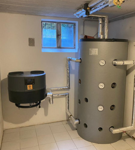 Pufferspeicher 500l und Wärmepumpe von KWB zur Trinkwassererwärmung im Sommer